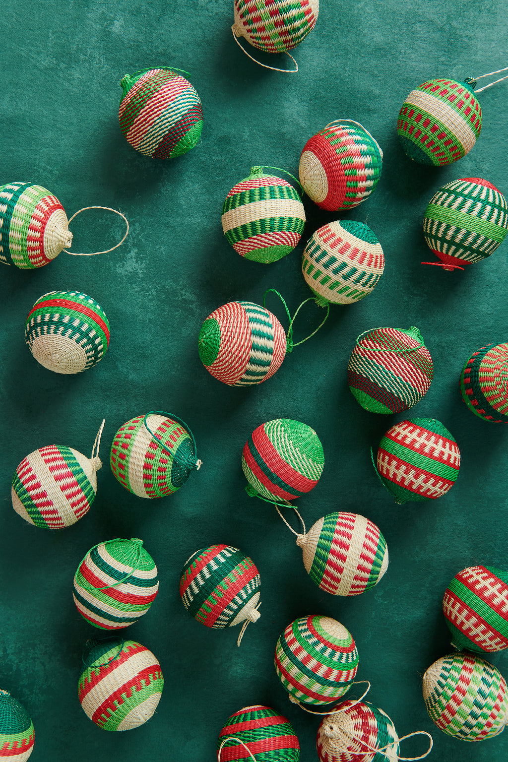 Handwoven Red & Green Jipi Palm Christmas Ornament