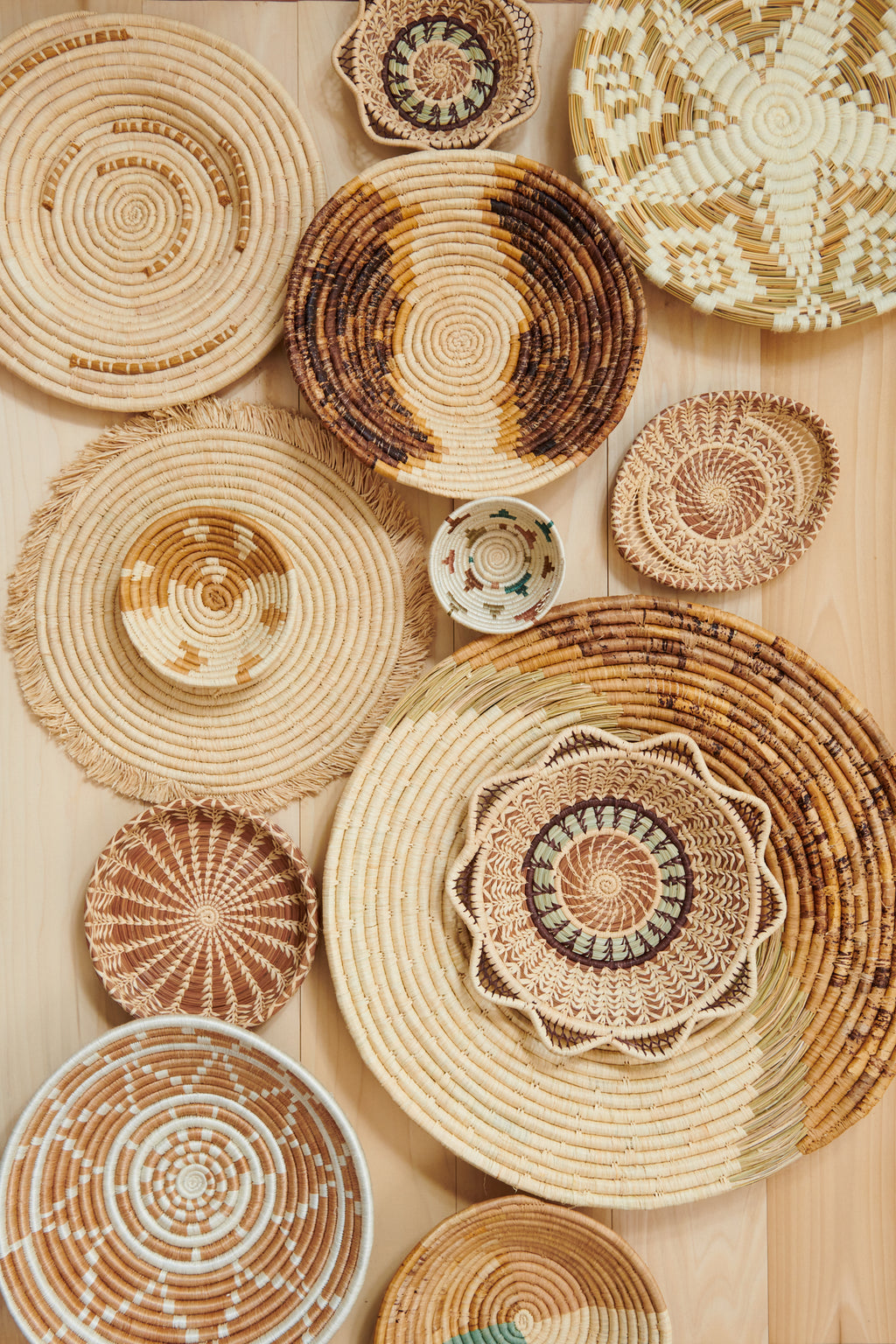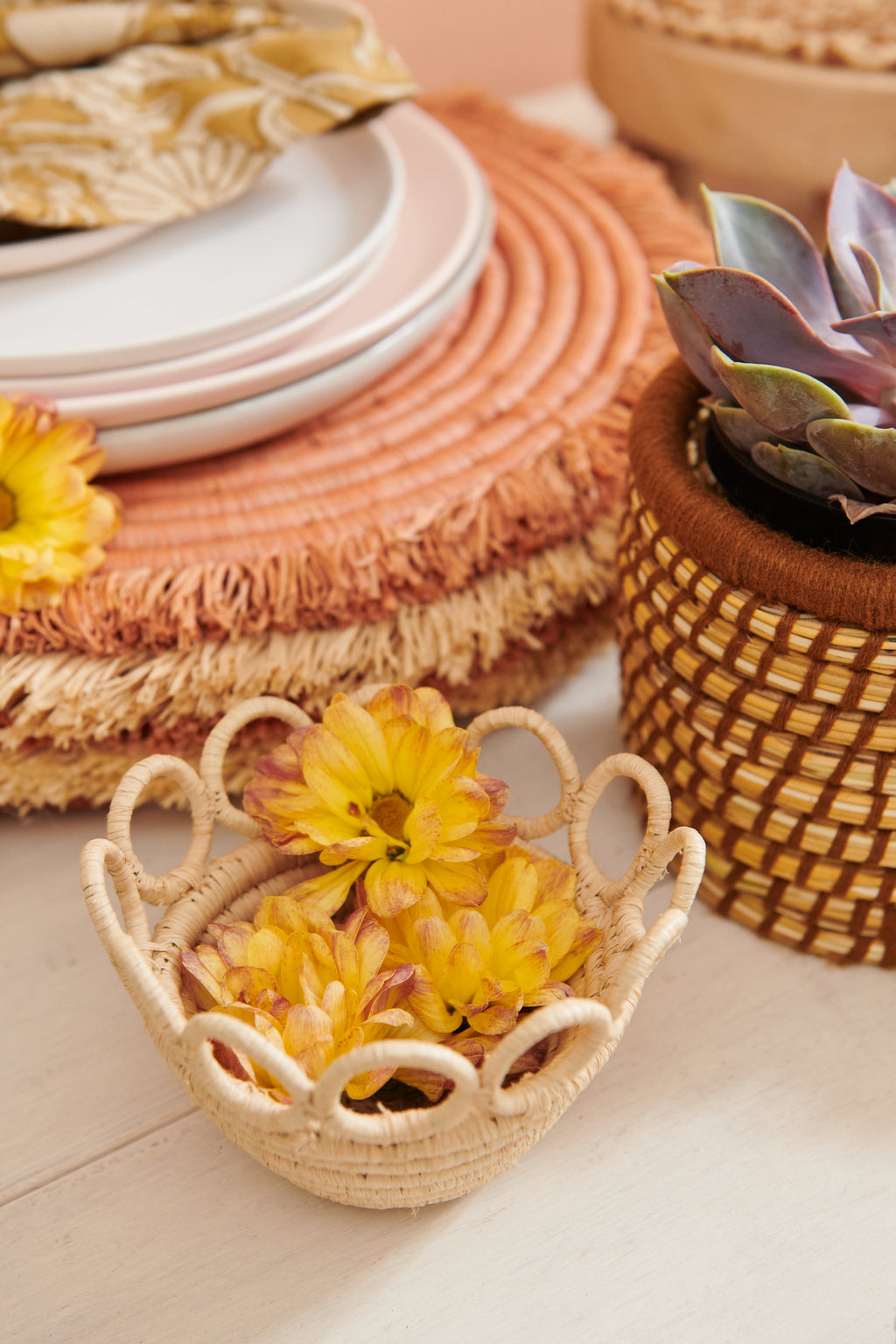 Handwoven Moroccan Planter Basket Ikat Ivory